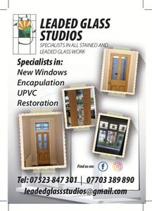 Leaded Glass Studios was established in 1980 by Trevor Lockwood we specialize in all aspects of traditional stained glass windows from making new one's to restoration and restoring antique one's, we also specialise in stained glass encapsulation incorporating new or original leaded lights into double glazed units